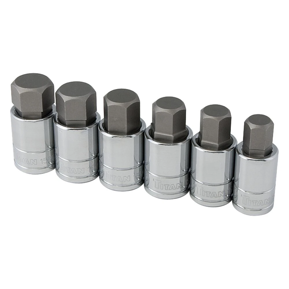1/2″ Drive SAE Hex Bit Socket Set 6 Pieces by Titan Tools®. This top-grade product is expertly made in compliance with stringent industry standards to offer a fusion of a well-balanced design and high level of craftsmanship. Manufactured from industry-leading materials using up-to-date equipment, it ensures everlasting reliability and enduring value. This product is distinguished by total quality assurance, unsurpassed by anybody else.