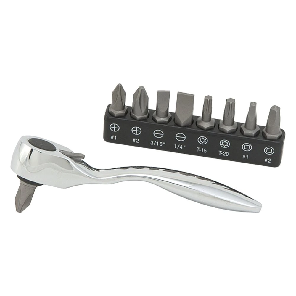 1/4″ Drive 3-1/2″ Length Flat Metal Grip Bit Driver and Bit Set with Bits 9 Pieces by Titan Tools®. This top-grade product is expertly made in compliance with stringent industry standards to offer a fusion of a well-balanced design and high level of craftsmanship. Manufactured from industry-leading materials using up-to-date equipment, it ensures everlasting reliability and enduring value. This product is distinguished by total quality assurance, unsurpassed by anybody else.