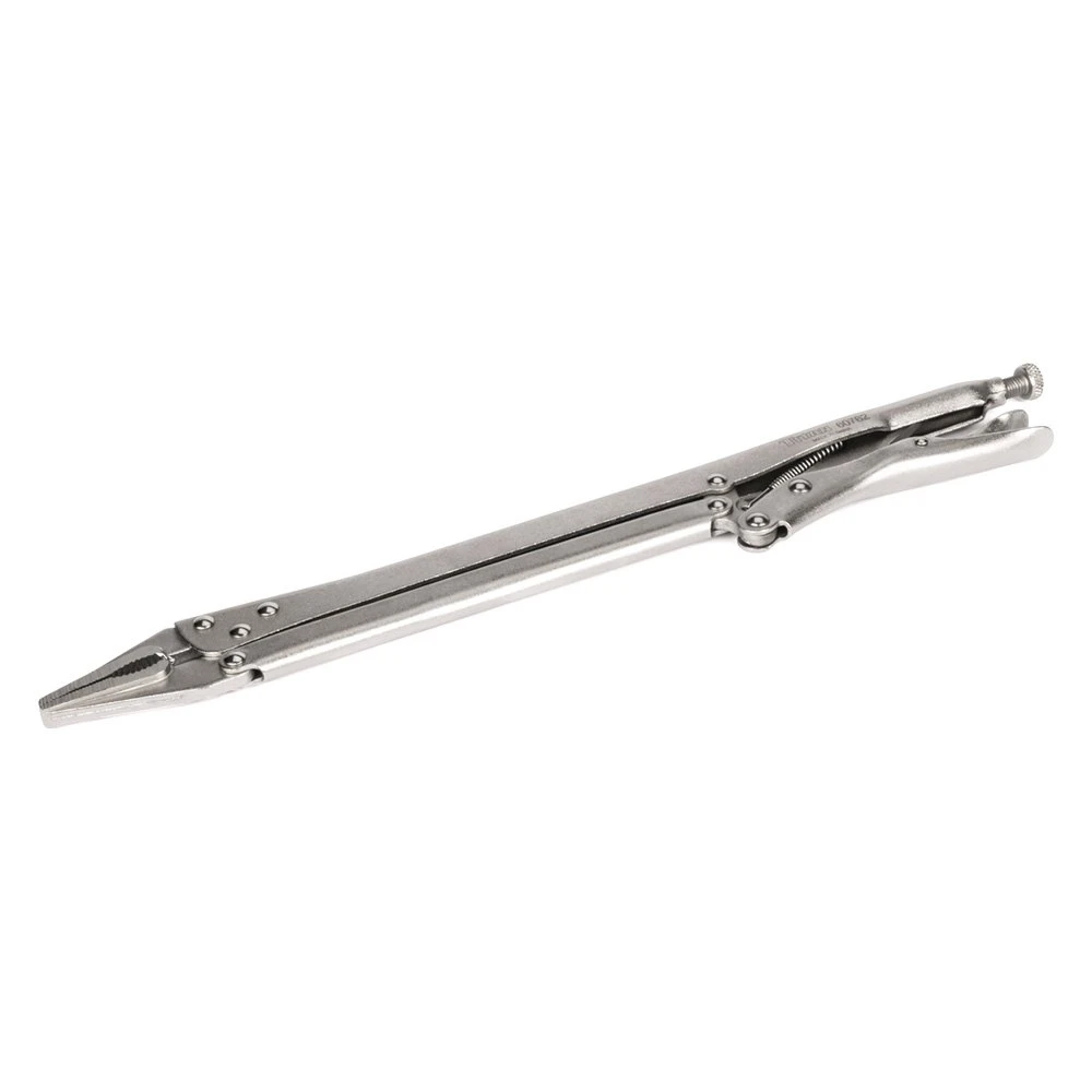 15″ Metal Handle Long Nose Jaws Long Reach Locking Pliers by Titan Tools®. This top-grade product is expertly made in compliance with stringent industry standards to offer a fusion of a well-balanced design and high level of craftsmanship. Manufactured from industry-leading materials using up-to-date equipment, it ensures everlasting reliability and enduring value. This product is distinguished by total quality assurance, unsurpassed by anybody else.
