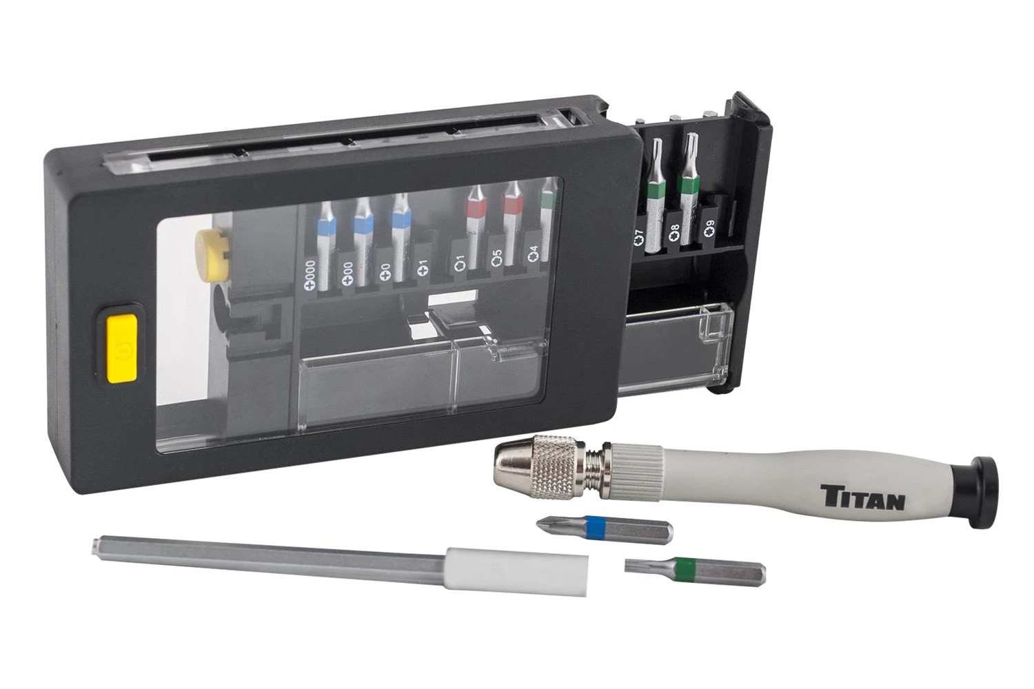 26-piece Multi Material Handle Precision Multi-Bit Screwdriver Kit by Titan Tools®. This product is built for hard work and long life, providing ease of use and reliability. It is precisely sized and well designed to help you get the job done quickly and properly. It is made from quality materials utilizing the latest engineering technology to serve you for many decades to come.