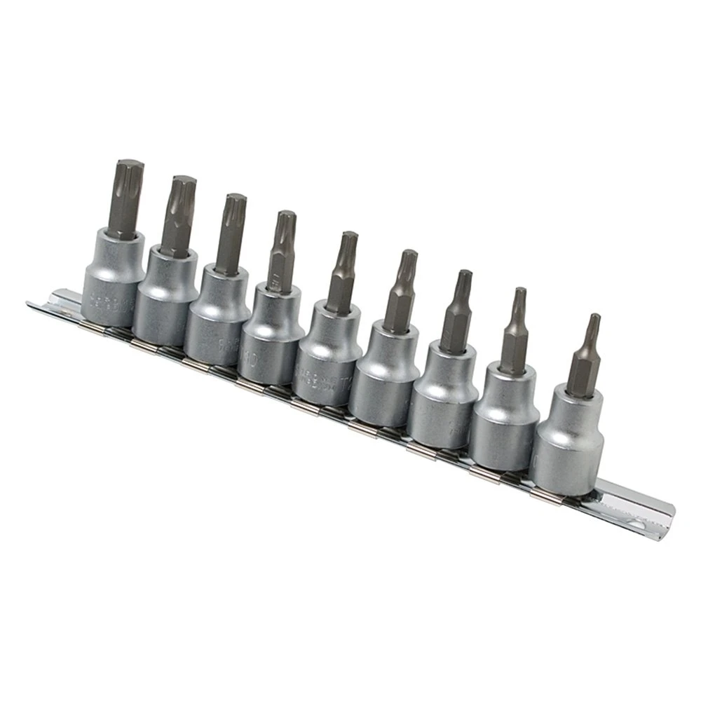 3/8″ Drive Torx Bit Socket Set 9 Pieces by Titan Tools®. This top-grade product is expertly made in compliance with stringent industry standards to offer a fusion of a well-balanced design and high level of craftsmanship. Manufactured from industry-leading materials using up-to-date equipment, it ensures everlasting reliability and enduring value. This product is distinguished by total quality assurance, unsurpassed by anybody else.