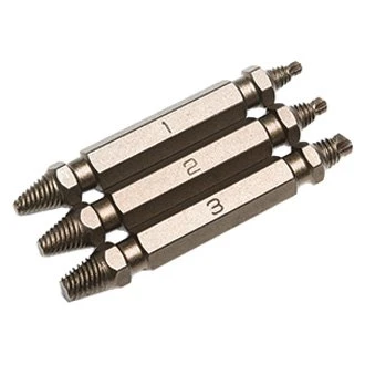 3-piece 7/32″ to 5/16″ Hex Body Double-Ended Flute Screw Extractor Set by Titan Tools®. This top-grade product is expertly made in compliance with stringent industry standards to offer a fusion of a well-balanced design and high level of craftsmanship. Manufactured from industry-leading materials using up-to-date equipment, it ensures everlasting reliability and enduring value. This product is distinguished by total quality assurance, unsurpassed by anybody else.