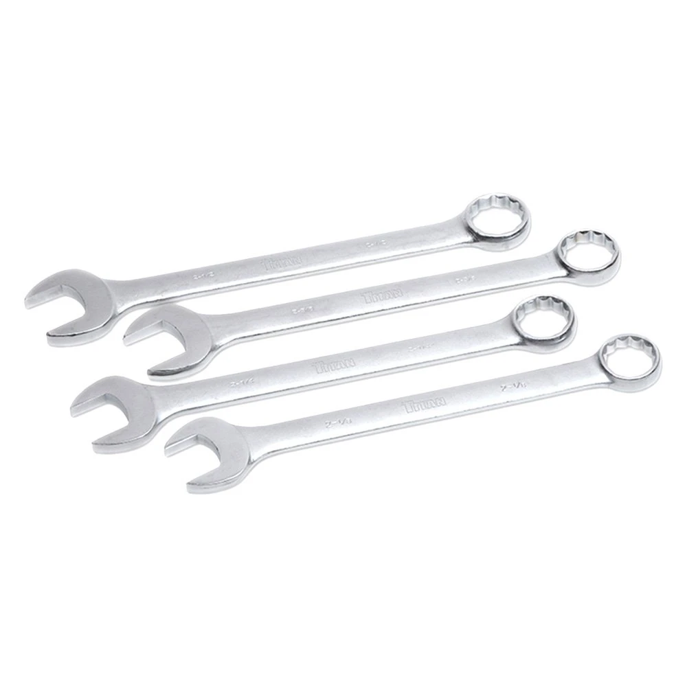 4-piece 2-1/8″ to 2-1/2″ 12-Point Straight Head Jumbo Combination Wrench Set by Titan Tools®. If you’re looking for a reliable solution to complete your project, this 1st-grade product is right up your alley. Designed utilizing the finest materials, it delivers unmatched levels of durability and strength needed to provide long-lasting service life. Superior in functionality, it will help you make any job easier and faster.