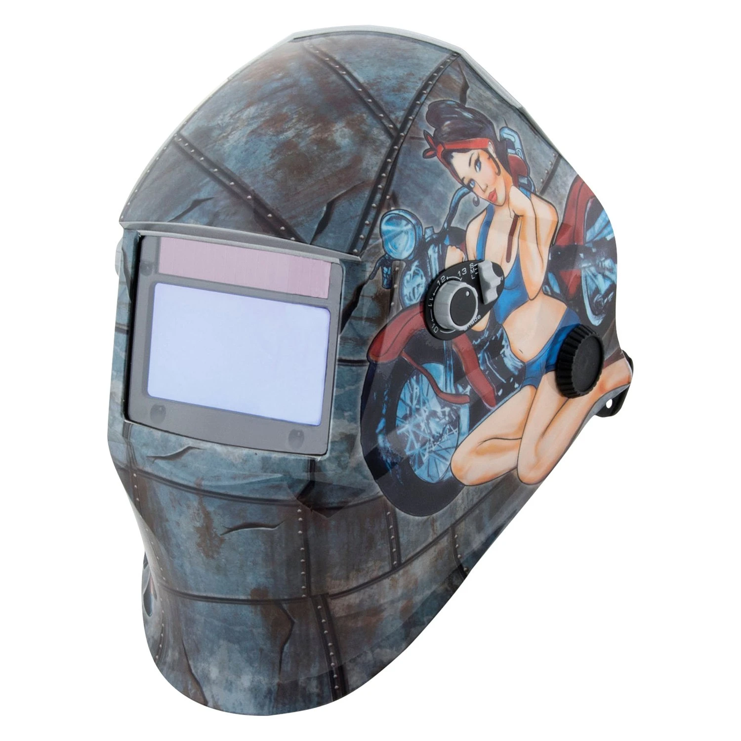 “Biker Girls” Print Solar Auto-Darkening Welding Helmet with Li-ion Back-up Batteries (45000) by Titan Tools®. Durable, light weight material is corrosion resistant and flame retardant. Ultra high performance filters protects against UV & IR. If you’re looking for a reliable solution to complete your project, this 1st-grade product is right up your alley. Designed utilizing the finest materials, it delivers unmatched levels of durability and strength needed to provide long-lasting service life. Superior in functionality, it will help you make any job easier and faster.