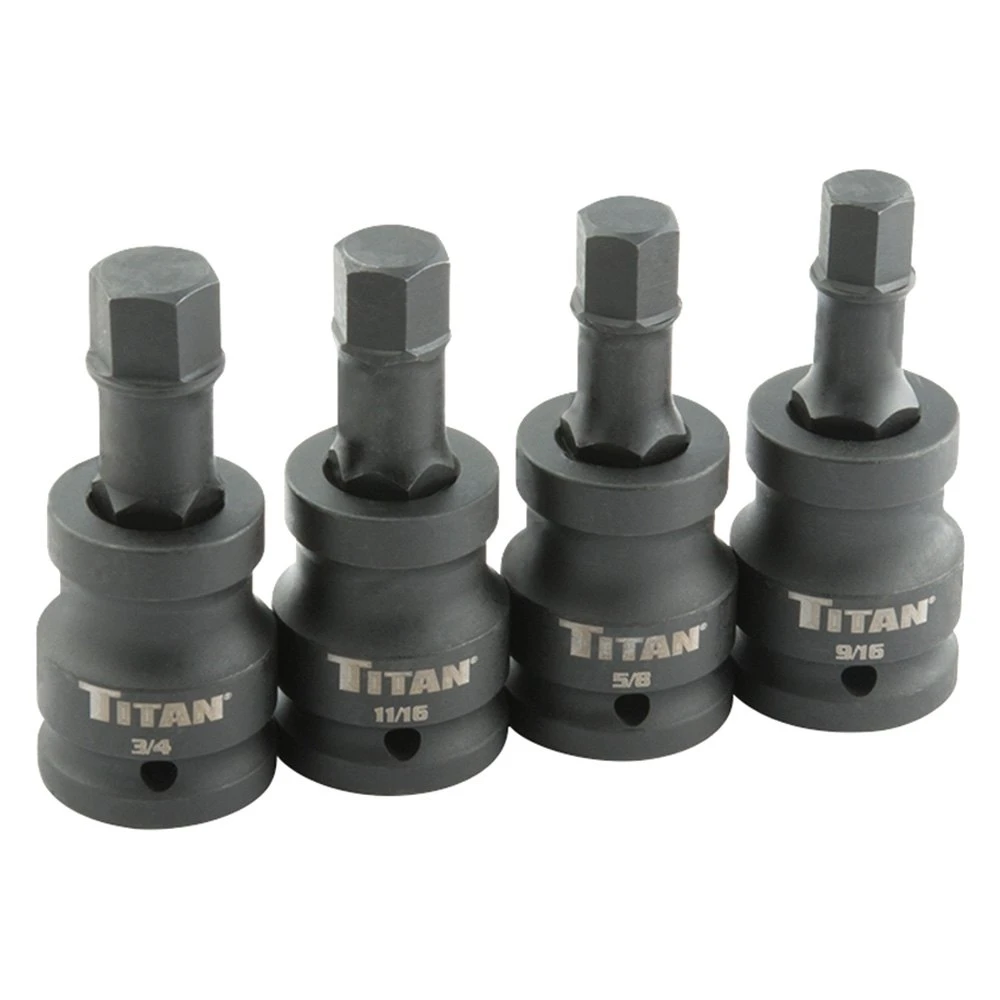 Torsion Core™ 3/4″ Drive SAE Hex Impact Bit Socket Set (5 Pieces) by Titan Tools®. This top-grade product is expertly made in compliance with stringent industry standards to offer a fusion of a well-balanced design and high level of craftsmanship. Manufactured from industry-leading materials using up-to-date equipment, it ensures everlasting reliability and enduring value. This product is distinguished by total quality assurance, unsurpassed by anybody else.