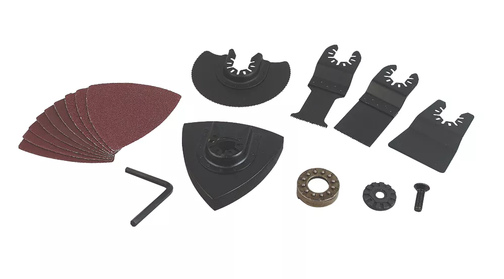 Quick-change multi-tool with 300W motor. Features oscillating cutting action and soft-grip handle. Supplied in blow-moulded case.