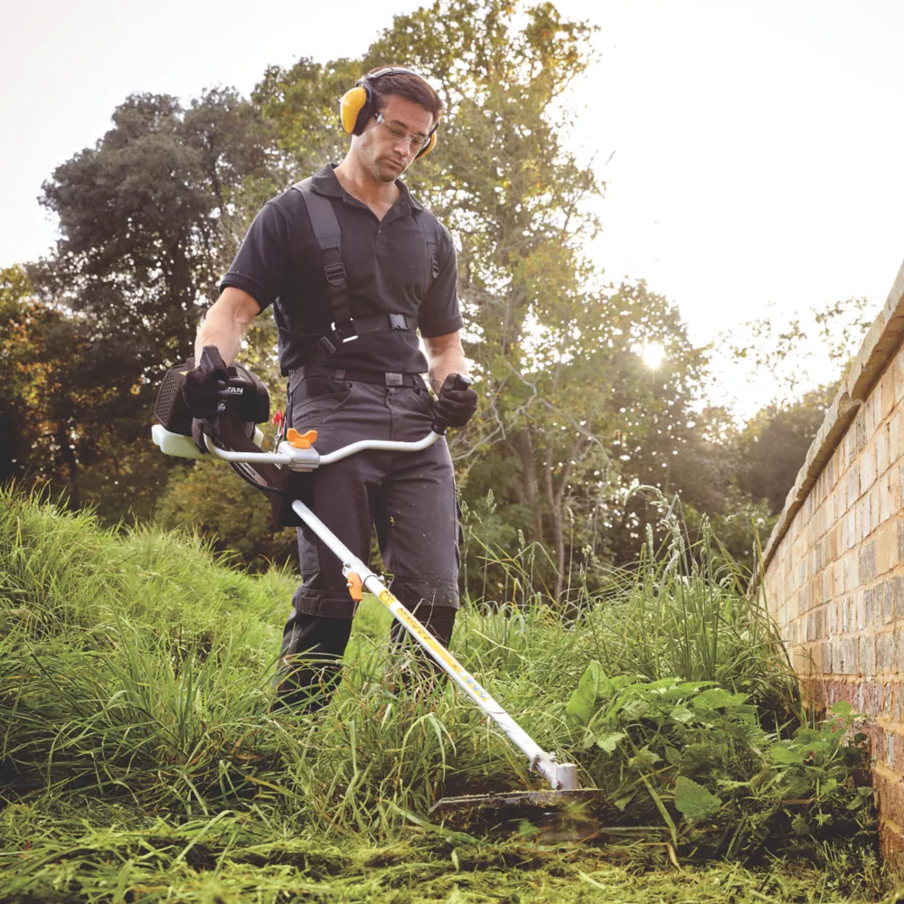 Easy to control 2-in-1 brushcutter and grass trimmer ideal for tidying up edges around lawns, walls, houses and fences or anywhere difficult to reach with a mower. Easy Start+ technology reduces the number of pulls and pulling force required to start the engine. Tri-blade attachment is able to clear thicker brush and thicket with ease. Split shaft allows tool to be stored in 2 halves. Anti-vibration reduces fatigue and strain while in use.